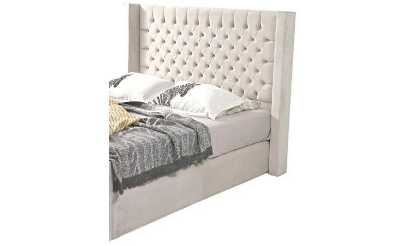 - Structure & Matière : Cadre et Tête de lit en panneau agglomérer cloutés, Hauteur de la tête de lit est de 1m40 en tissu velours