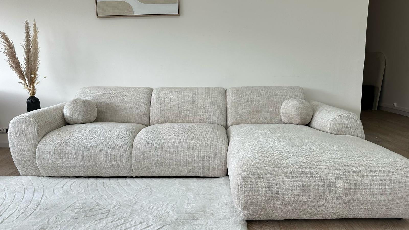 Offrez à votre salon une touche de douceur avec le canapé d’angle Cloud. Habillé d’un tissu Marbella beige au toucher délicat, ce canapé allie design moderne et confort absolu.